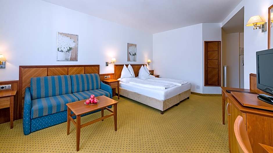 This large room features a TV, a private balcony, a mini-bar, and an private bathroom complete with toiletries, hairdryer, and make-up mirror.